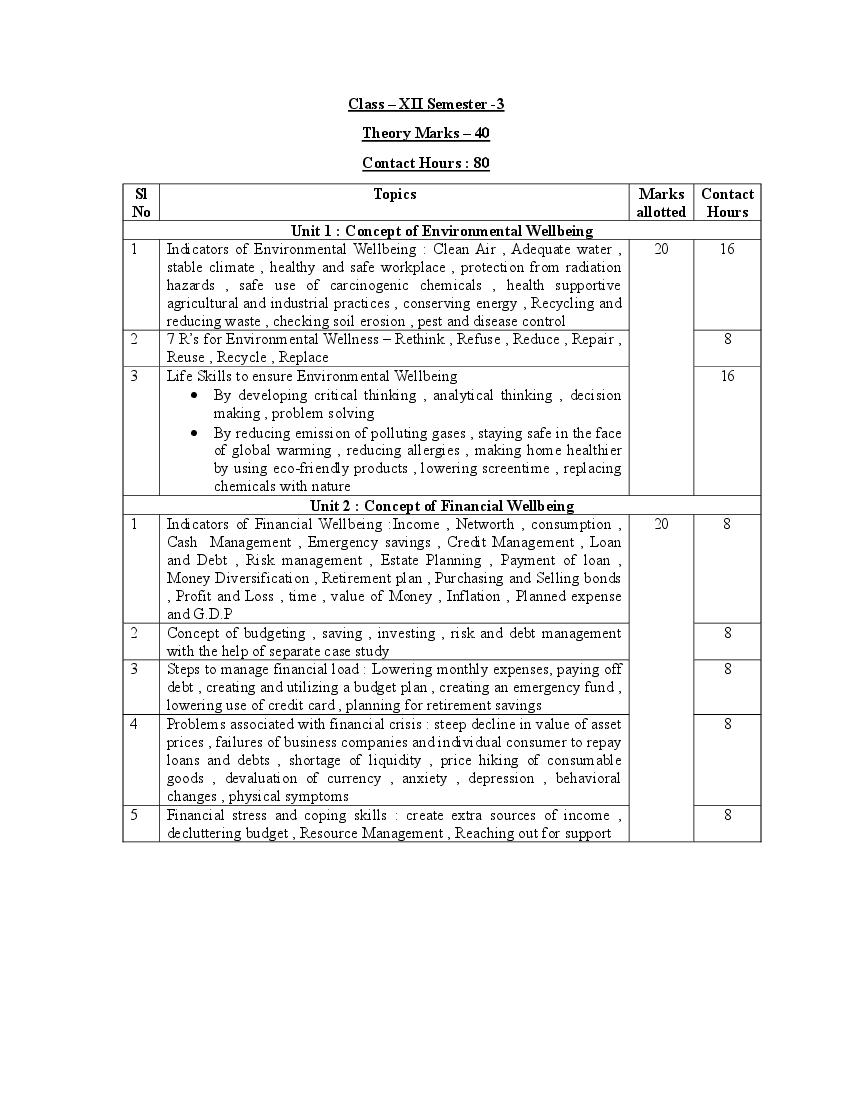 | Information Here | West Bengal Board Syllabus for Class 12 Science of Wellbeing |