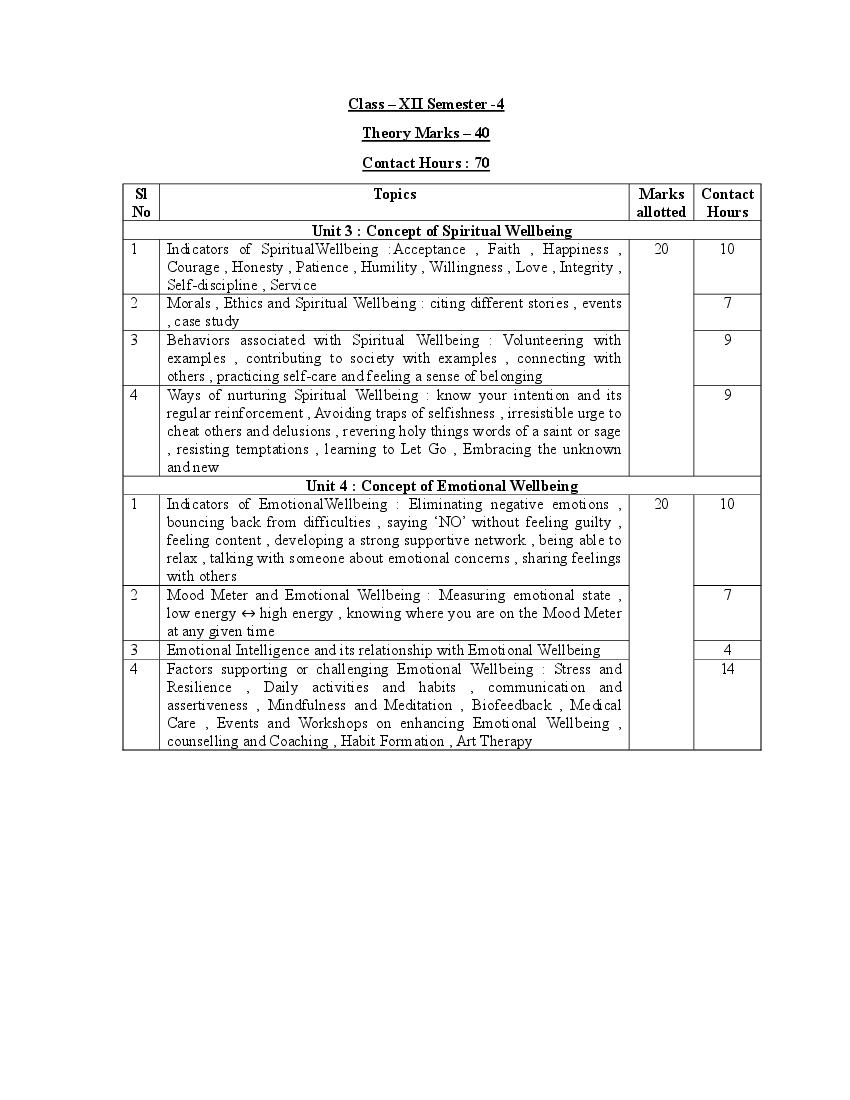 The West Bengal Board syllabus for class 12th Science of Wellbeing is as follows.